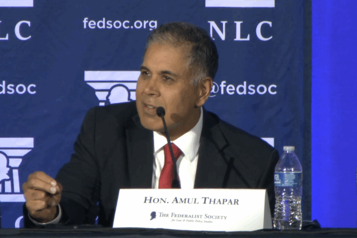 Judge Amul Thapar, a member of the 6th Circuit Court of Appeals and a member of President Donald Trump’s short-list for a Supreme Court nomination in his first term, pushed back on accusations of genocide against Israel at a Federalist Society conference on antisemitism on Friday.