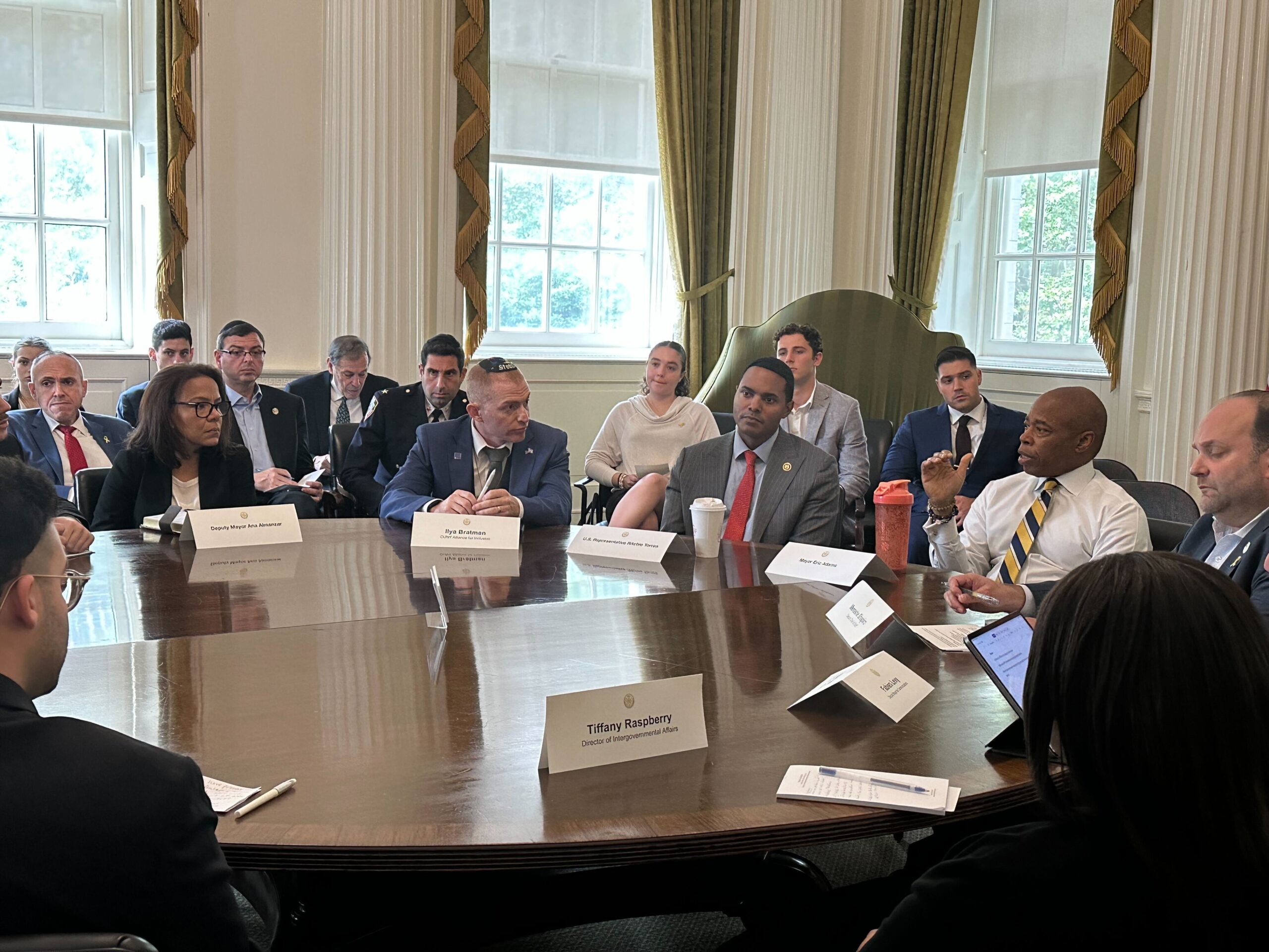 Mayor Eric Adams and Rep. Ritchie Torres (D-NY) met with CUNY Jewish students at City Hall to discuss antisemitism on campus, Sept. 23, 2024