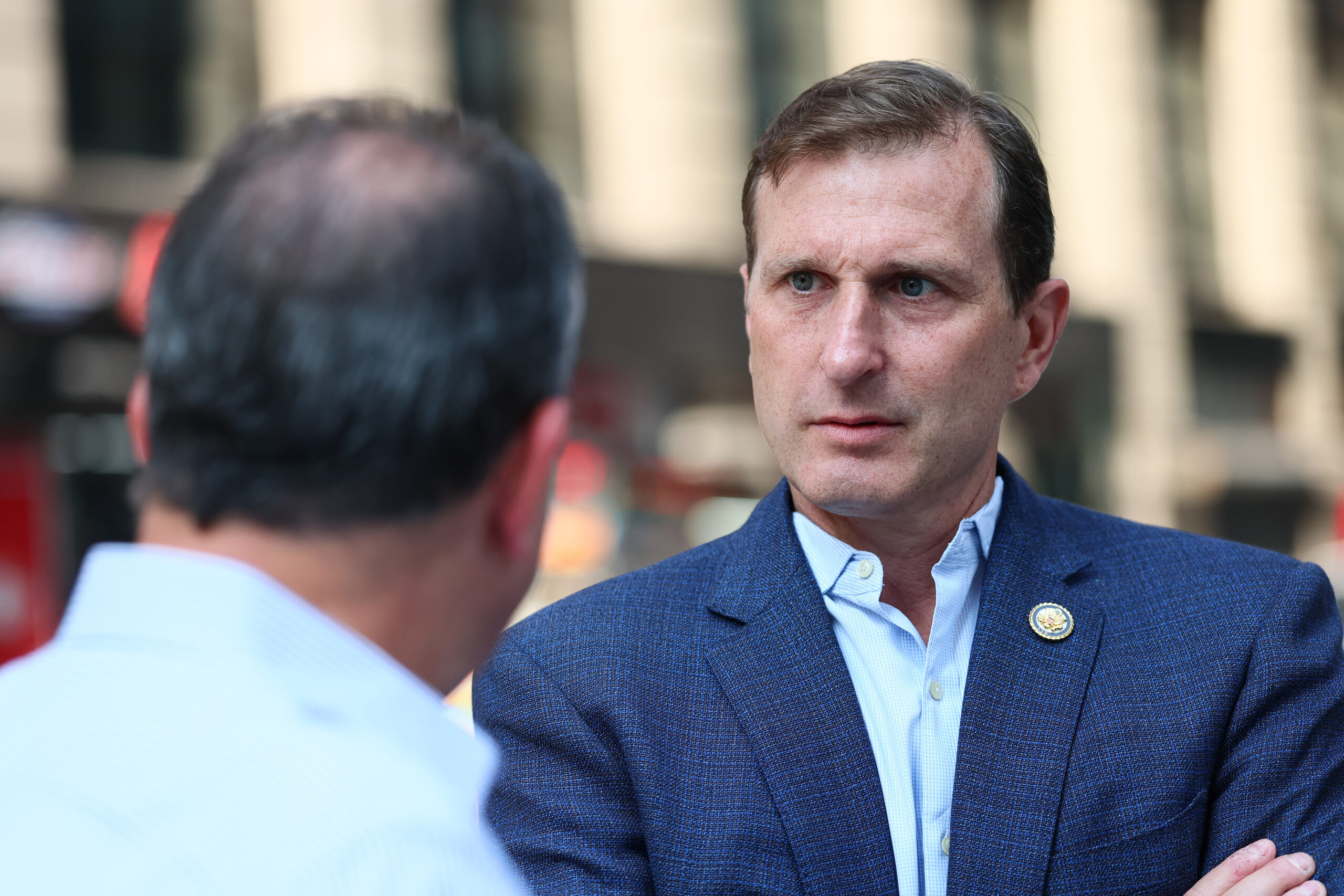 Rep. Dan Goldman (D-NY) outside the Jacob K. Javitz Federal Building on August 07, 2025 in New York City.