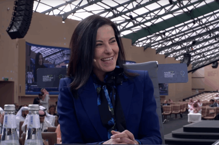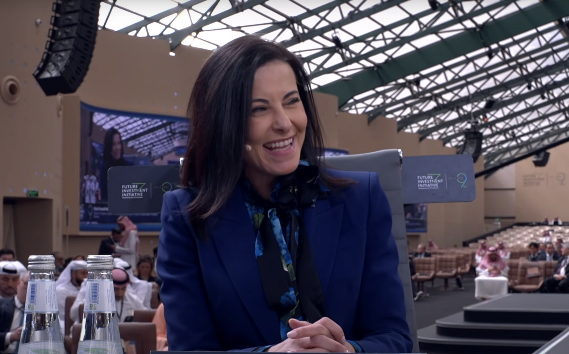 Former Deputy National Security Advisor Dina Powell McCormick speaks at the Future Investment Initiative Summit in Riyadh, Saudi Arabia, Oct. 28, 2025