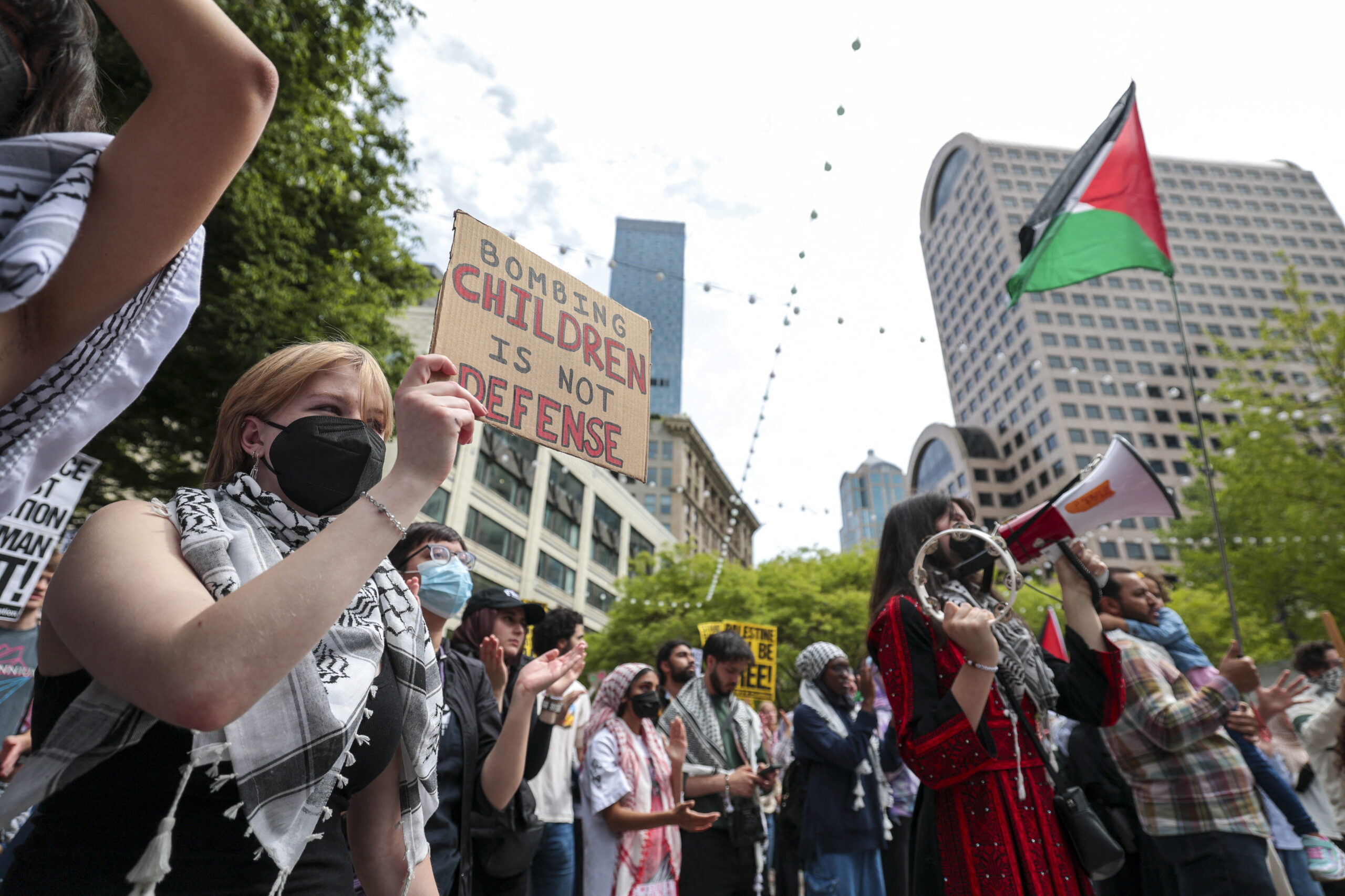 Pro-Palestinian demonstrators rally in Seattle, Washington on May 27, 2024.