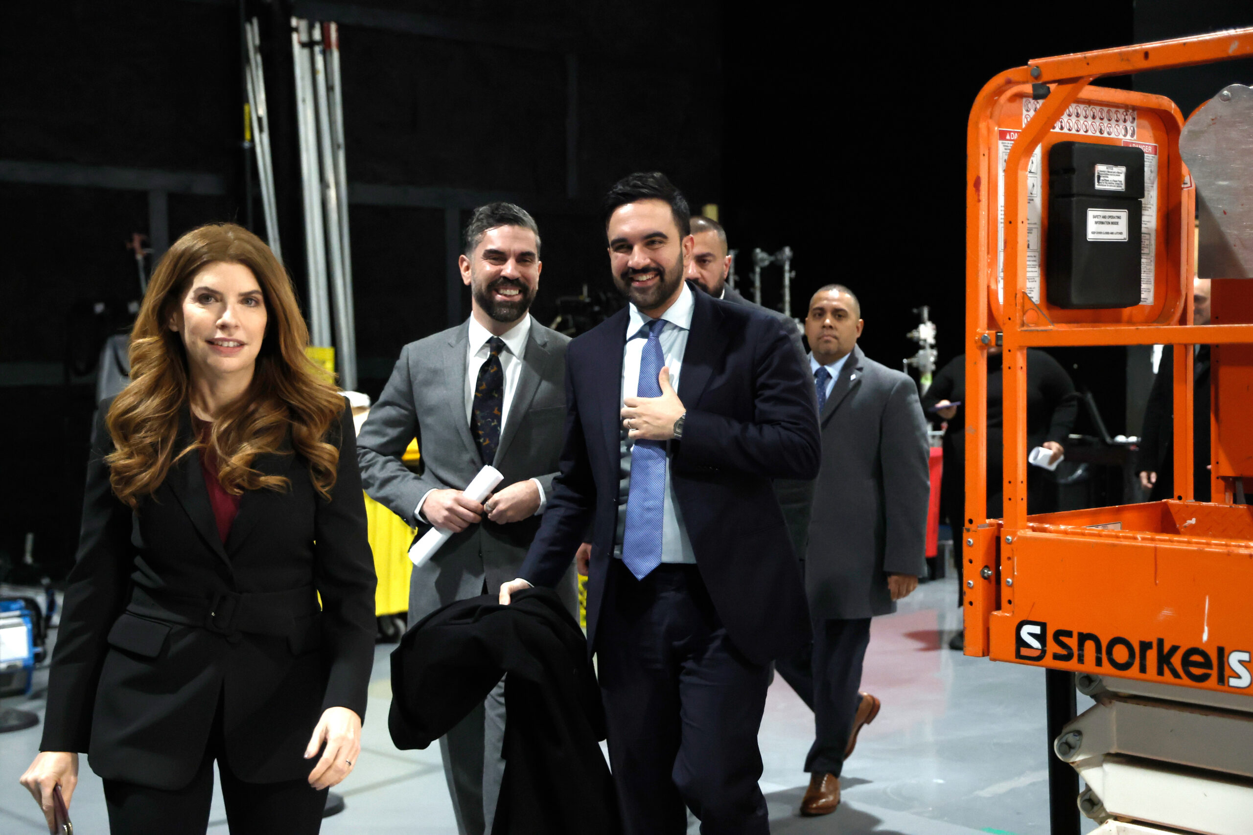 Julie Menin, speaker of the New York City Council and Zohran Mamdani, mayor of New York, arrive for an announcement in the Brooklyn borough of New York, US, on Monday, Jan. 12, 2026 (Photographer: John Lamparski/Bloomberg via Getty Images)