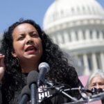 Analilia Mejia, co-executive director of Center for Popular Democracy, speaks during a news conference outside the U.S. Capitol calling for immediate resignation of U.S. Supreme Court Associate Justice Clarence Thomas on April 19, 2023 in Washington, DC.