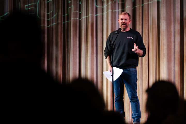 Maine Senate Graham Platner speaks at a town hall at the Leavitt Theater on October 22, 2025 in Ogunquit, Maine.