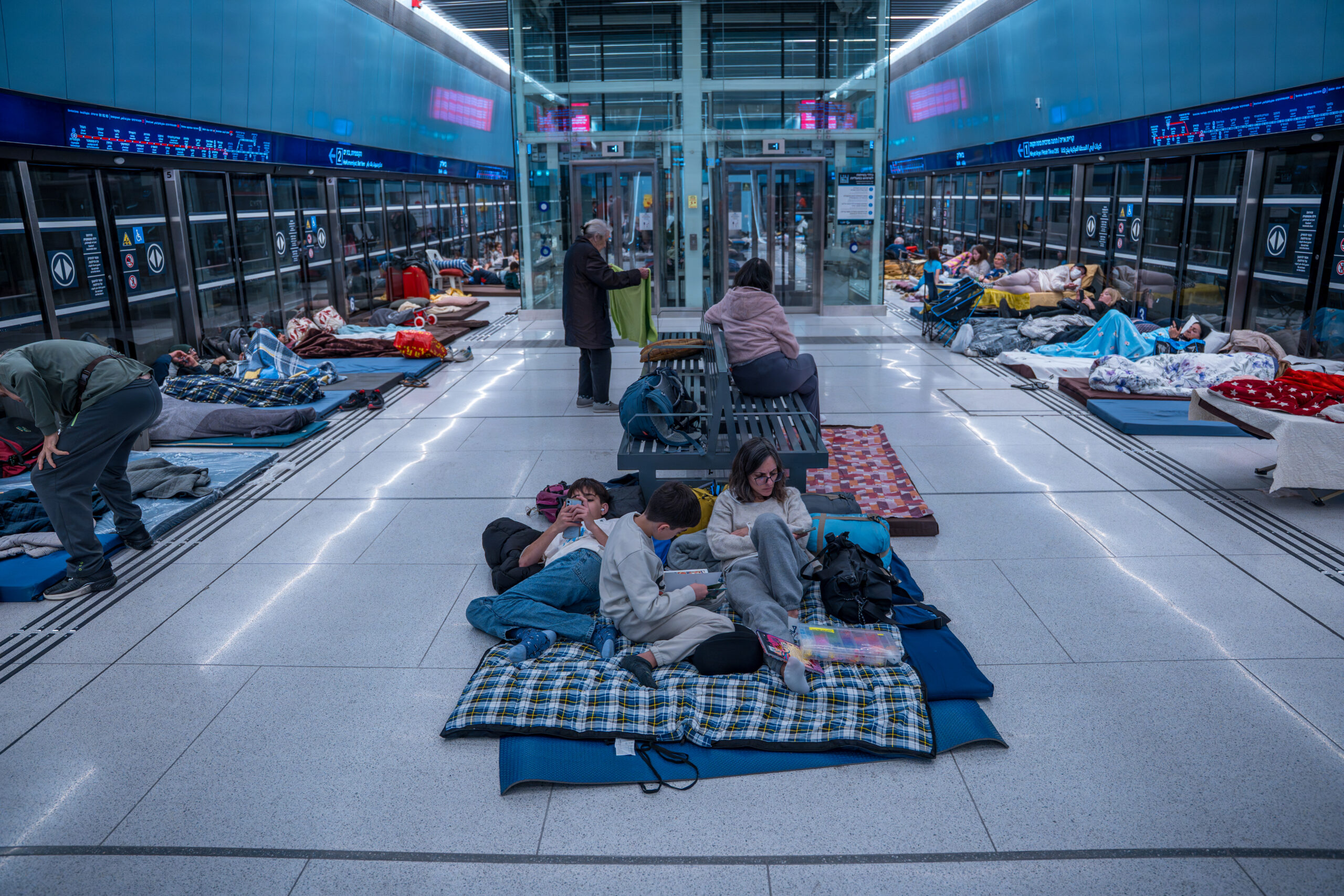 Israelis take shelter in an underground metro station in Ramat Gan, in Israel's Tel Aviv District, on February 28, 2026.