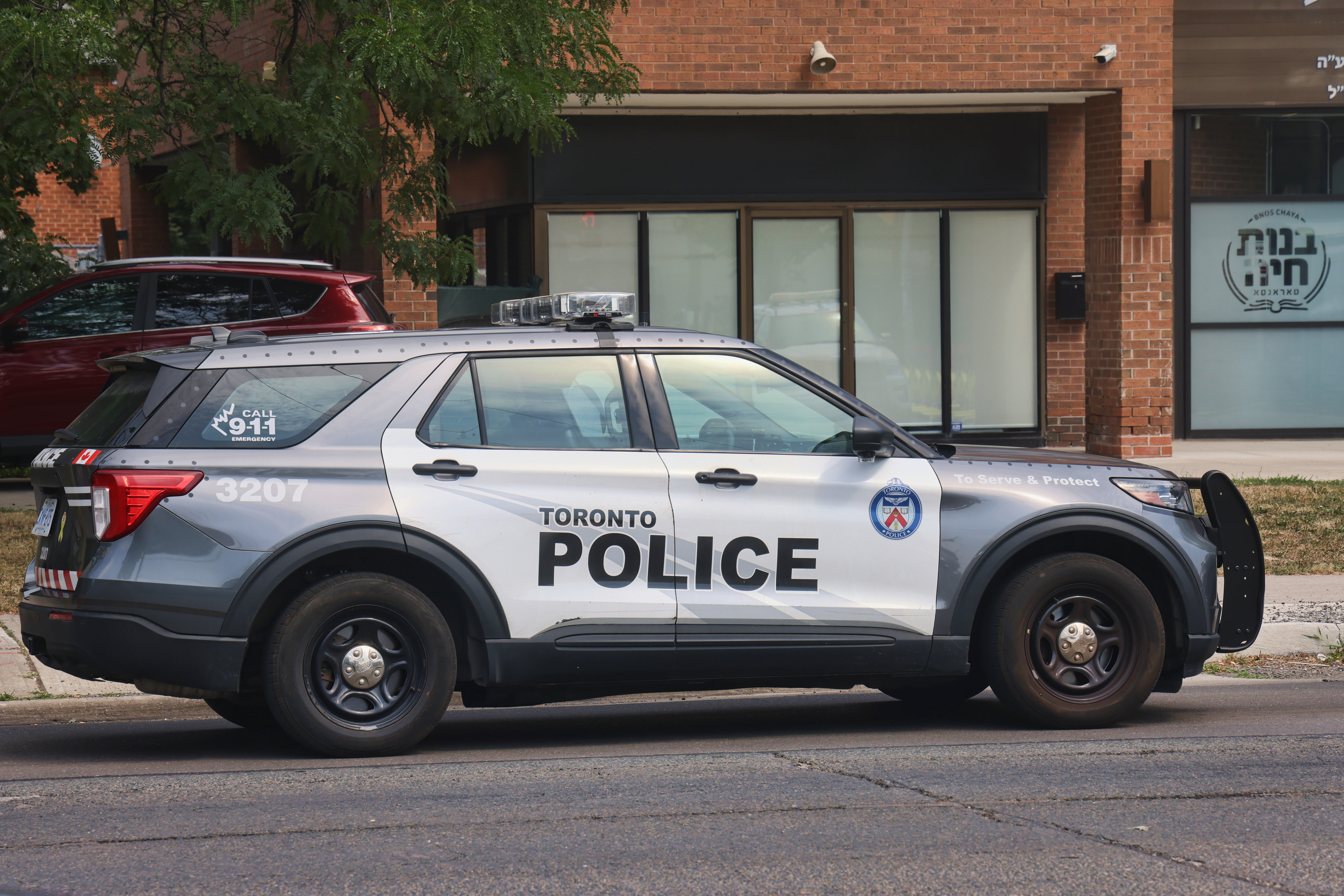 A Toronto police vehicle parks outside a Jewish school in Toronto, Ontario, Canada, on August 16, 2025.