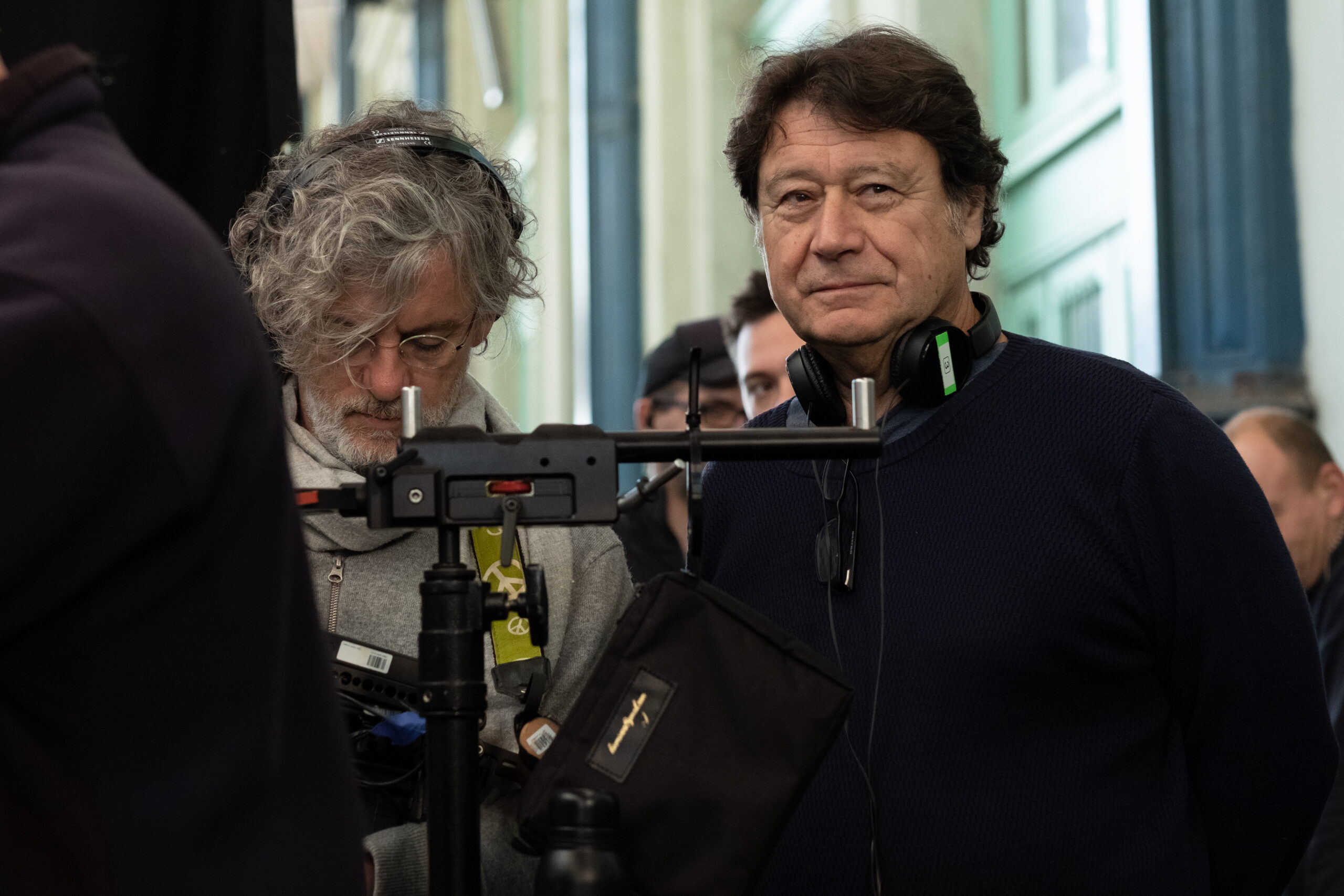 Producer Robert Lantos (right) and director Francois Girard work on the set of "The Song of Names."