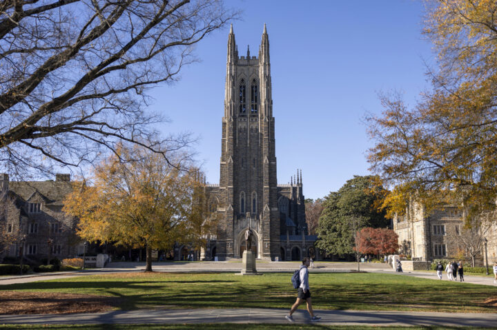 A general view of the Duke University Chapel on the campus of Duke University on November 23, 2025 in Durham, North Carolina.