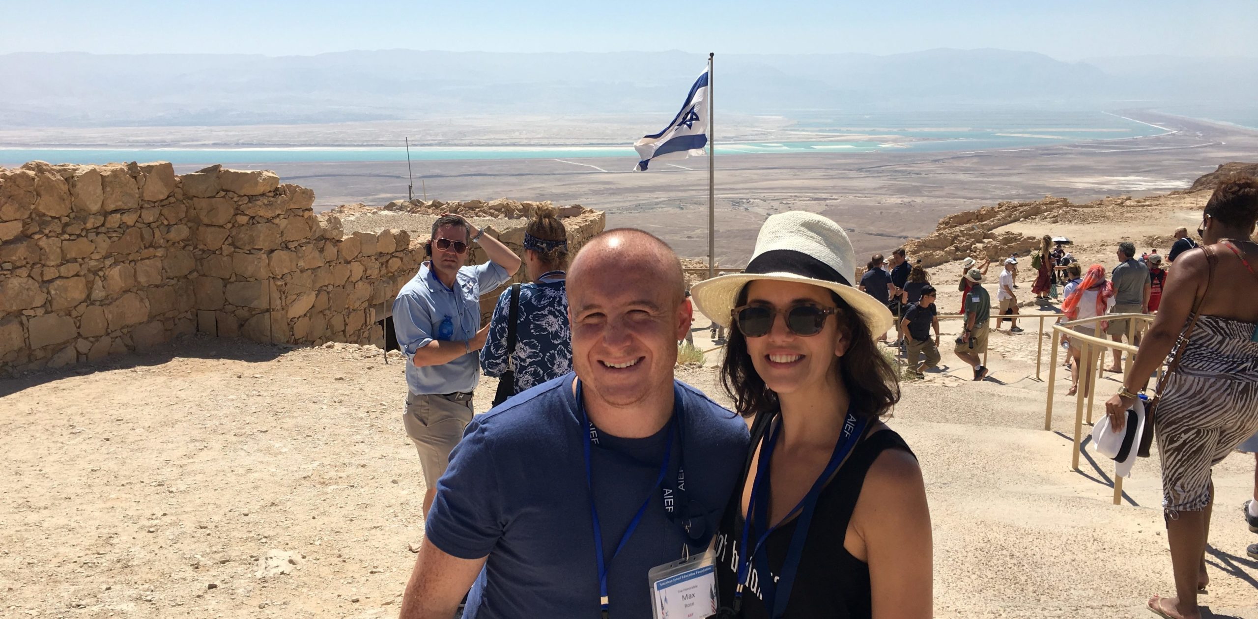 Rep. Max Rose (D-NY) and his wife, Leigh, pose for a photo atop Masada.