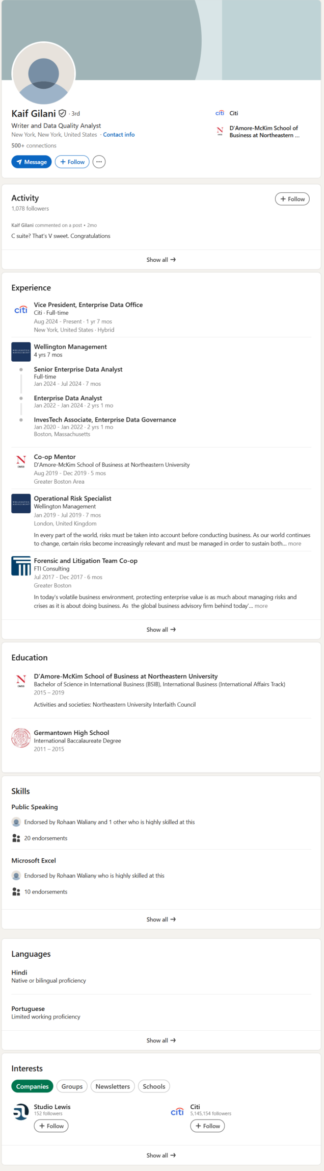 While in Israel, he also took classes in Middle East Studies at Tel Aviv University.