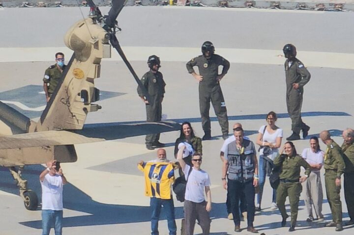 The first images of the men trickled out over the course of the morning: Miran, flanked by his wife and father, wearing a shirt with artwork by his two young daughters; the Berman twins in Maccabi Tel Aviv jerseys; Ohel, pale but smiling and standing on his own, with sunglasses to protect his damaged eyes.