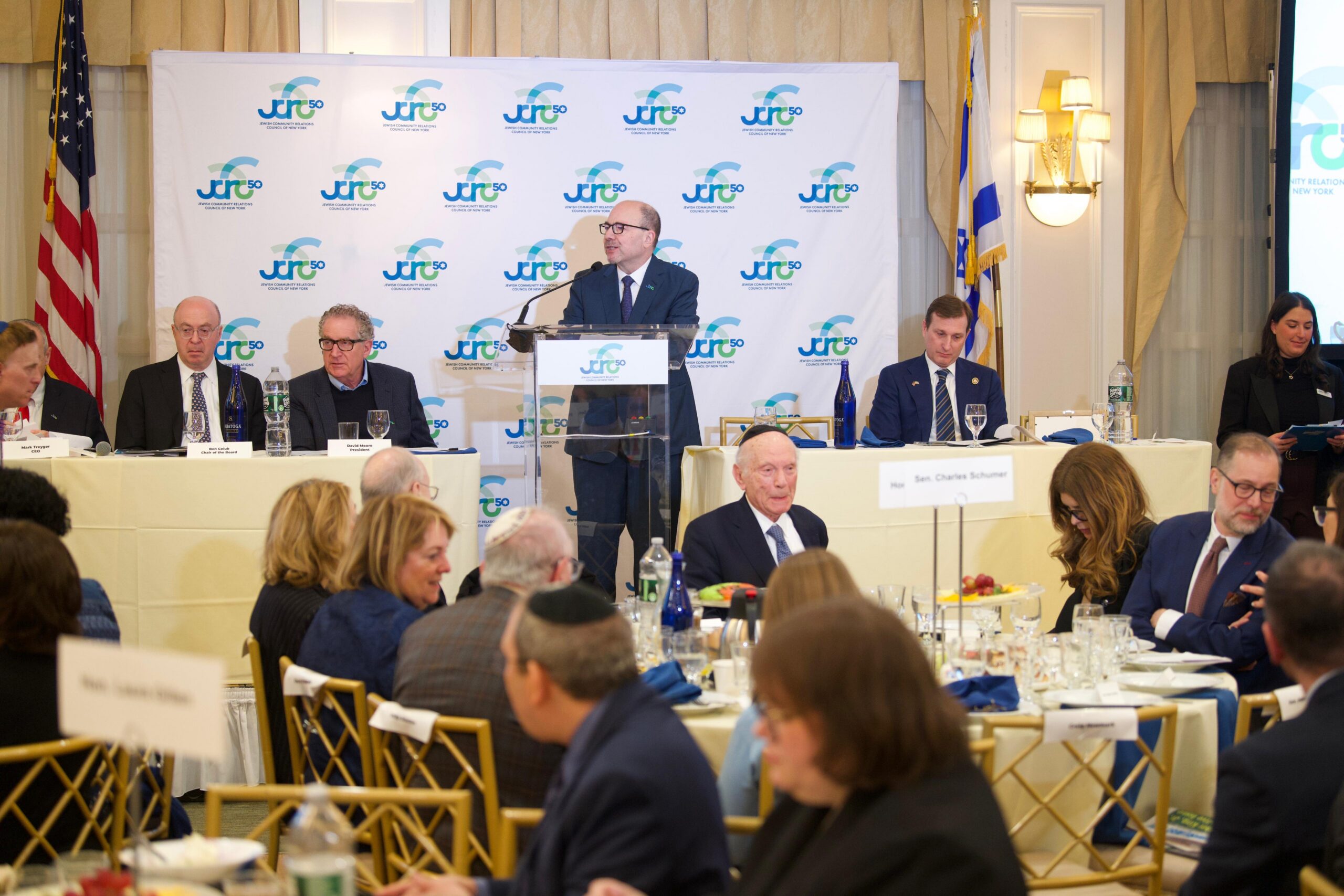 Philanthropist and Craigslist founder Craig Newmark addressed the Jewish Community Relations Council-New York’s annual Congressional Breakfast on Sunday in New York. Speakers at this year’s breakfast included Senate Minority Leader Chuck Schumer (D-NY), House Minority Leader Hakeem Jeffries (D-NY), and Reps. Dan Goldman (D-NY) and Jerry Nadler (D-NY).