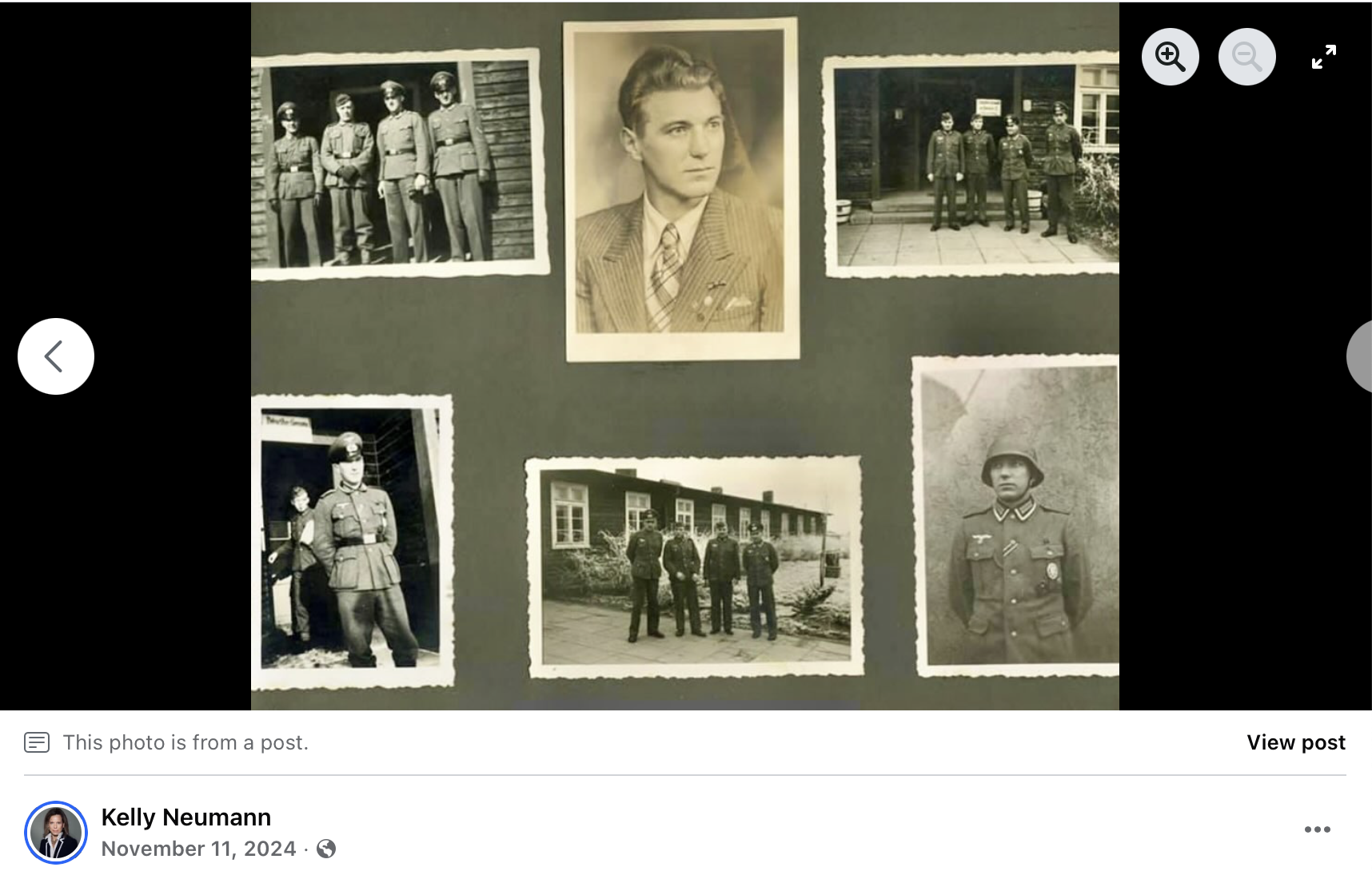 “Happy Veterans Day to all my family and friends who serve/served! Without you, America would not be here today,” the post, shared on Facebook and Instagram by Neumann, a local attorney, reads. The Facebook post, which remained online as of initial publication of this story, was subsequently deleted. “Interesting story, I do not talk much about but my Grandfather, Albert Neumann was on the German side in WWI & WWII. He escaped to Brazil with my Father after Germany lost in WWII and then made their way to Detroit where they spoke no English and worked their way up to provide a stable life for their family.”