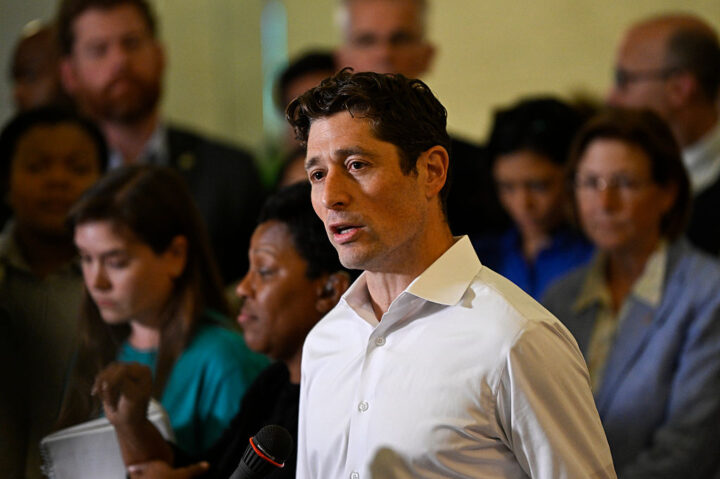 Minneapolis Mayor Jacob Frey speaks during a press conference at City Hall following a mass shooting at Annunciation Catholic School on August 28, 2025 in Minneapolis, Minnesota.